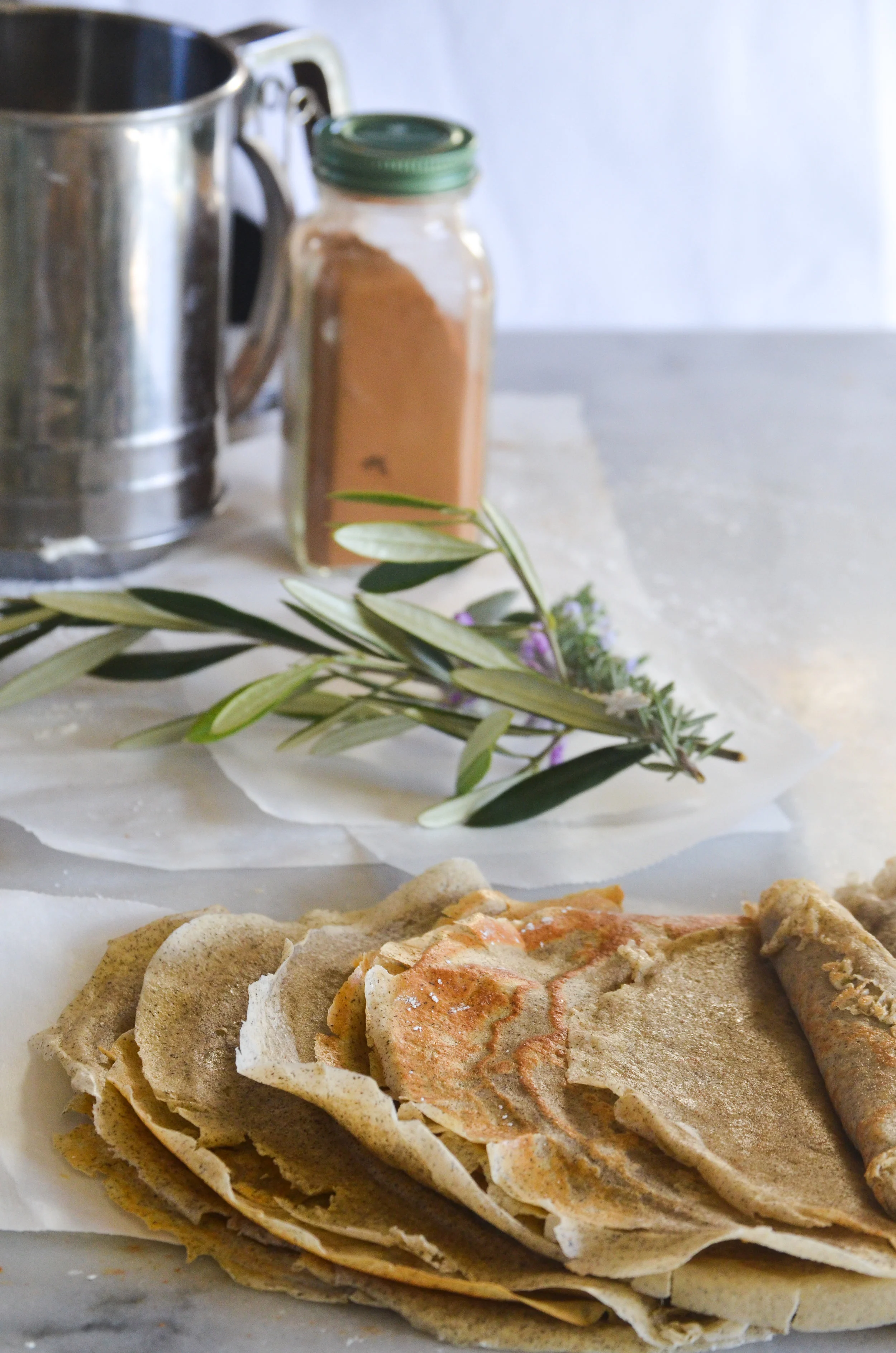 Weekend breakfasts with my mom were 1. Scones made from the Fisher fair scone mix, 2. Pancakes from Krusteaz mix, 3. Homemade crepes with caramelized apples dusted with powdered sugar.My mom and I were always up before my two younger sisters and the only way I could get my sisters up and at em' was to make scones. When the scones had 5 more minutes left in the oven I would run downstairs to my sisters' bedrooms and yell "Hot scones in 5 minutes, hot scones in 5 minutes." That usually got them up.When my mom felt like making breakfast and getting a little fancy, she would make us the crepes. My favorite part were actually the apples she would cook with brown sugar, cinnamon, and butter. She would take a crepe, roll it up with the apples tucked inside and dust powdered sugar on top.For many years this was the only way I would eat a crepe. I went to France when I was 14 and tried to order a crepe with apples. I was swiftly informed that they did not serve their crepes with apples.It wasn't until my sister Sahara and I were living in Santa Fe, New Mexico that I realized the true potential of crepes. Sahara worked at a restaurant/food truck out of an airstream trailer that served French food, mostly crepes and soups. She had an amazing boss who would send her home with food all the time. Once she brought me a savory buckwheat crepe filled with ratatouille and goat cheese. My mind was officially blown. Now I love crepes, with ham, cheese, nutella, bananas, and of course apples.This is a buckwheat crepe recipe served with caramelized apples. Crepes are so simple to prepare and pretty simple to make. It is easy to mix the batter in a blender so you don't get any clumps from the flour. And remember, the first few crepes never turn out good. But keep trying.Crepe recipe is adapted from David Lebovitz.